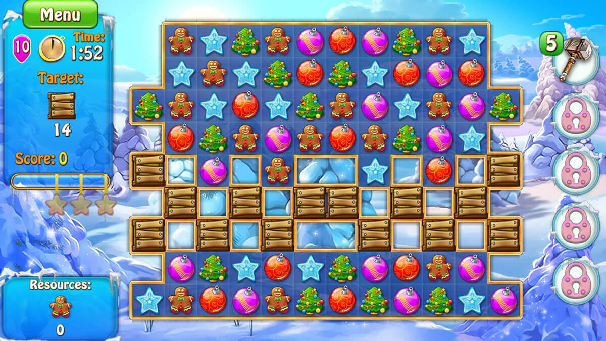 Play this delightful match-3 game that takes place in an exciting festive setting.