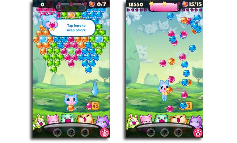 Match cute, kitty-shaped bubbles