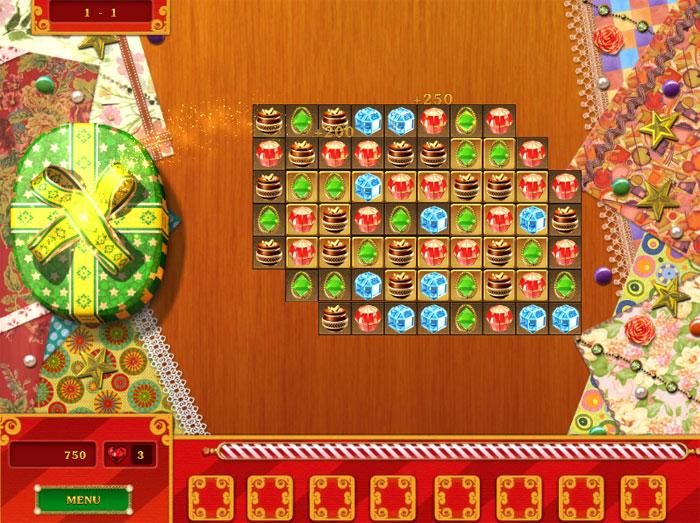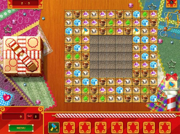 Enjoy matching colored gems to reveal the content of every boxed gifts.