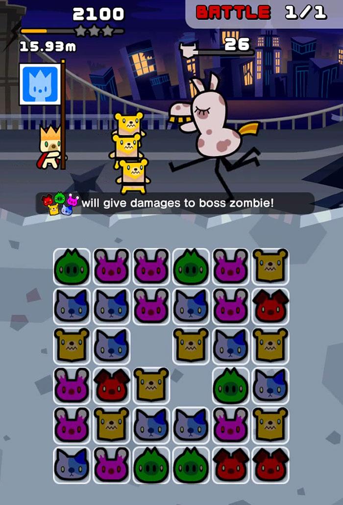 Match 3 or more adjacent blocks, horizontally or vertically, to summon animal allies by your side.