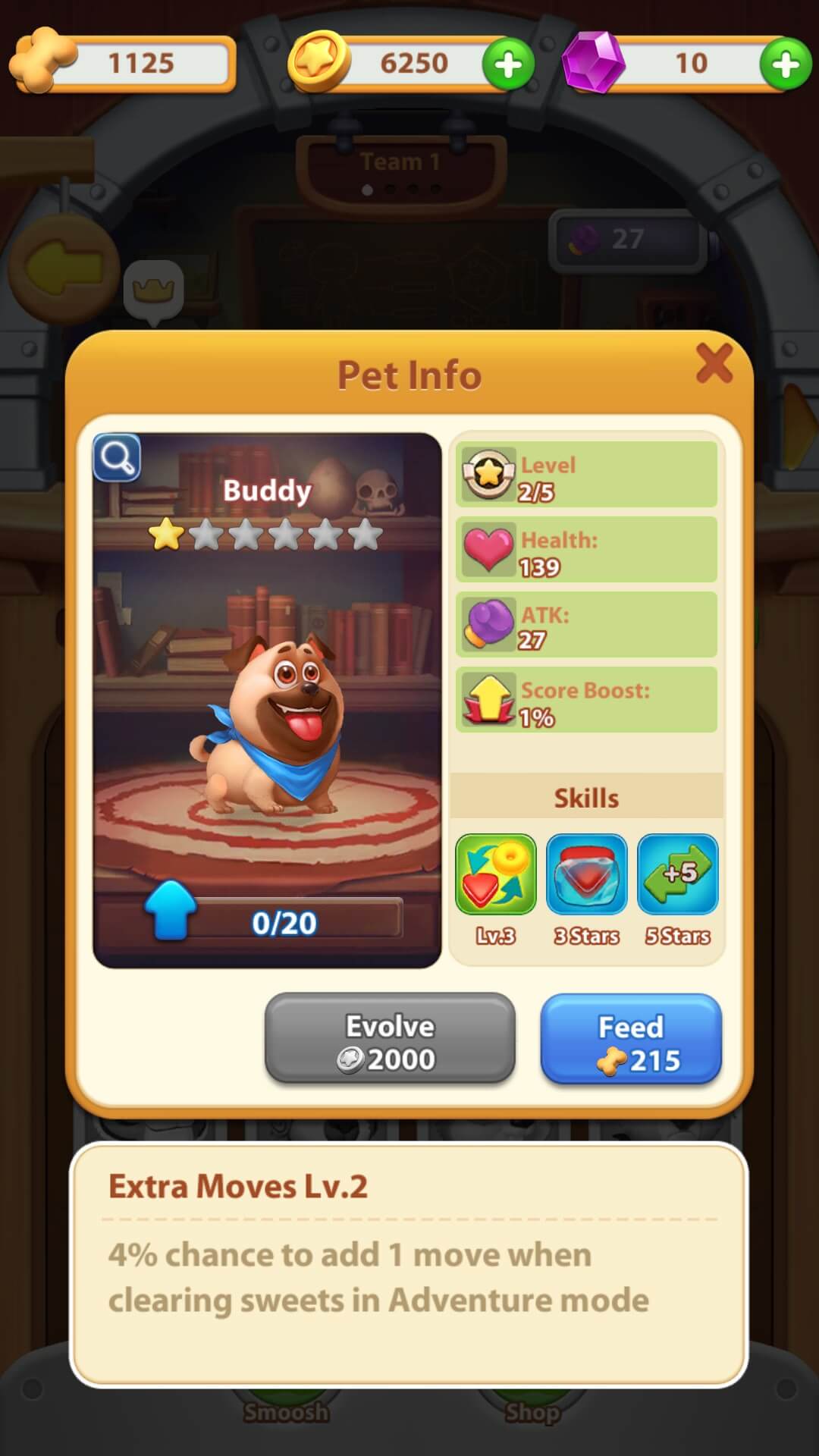 Each pet has its own level and stats such as health and attack. Additionally, every pet has its own unique set of skills that benefits you in different ways when brought into play. From the Pet menu, you can have a look at the Pet info to see their various stats. This is also where you can feed them Pet Biscuits to upgrade their level, and evolve them when they are ready! From the in-game Shop, you can try your luck in collecting a variety of pets using the various currencies available in the game, including the premium currency.