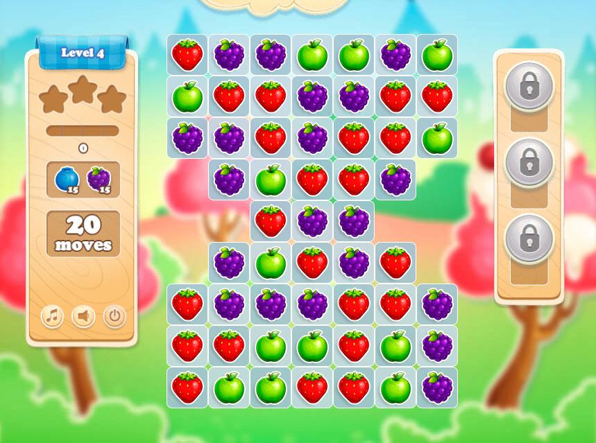 Connect as many fruits as you can in a single move to spawn special fruits.